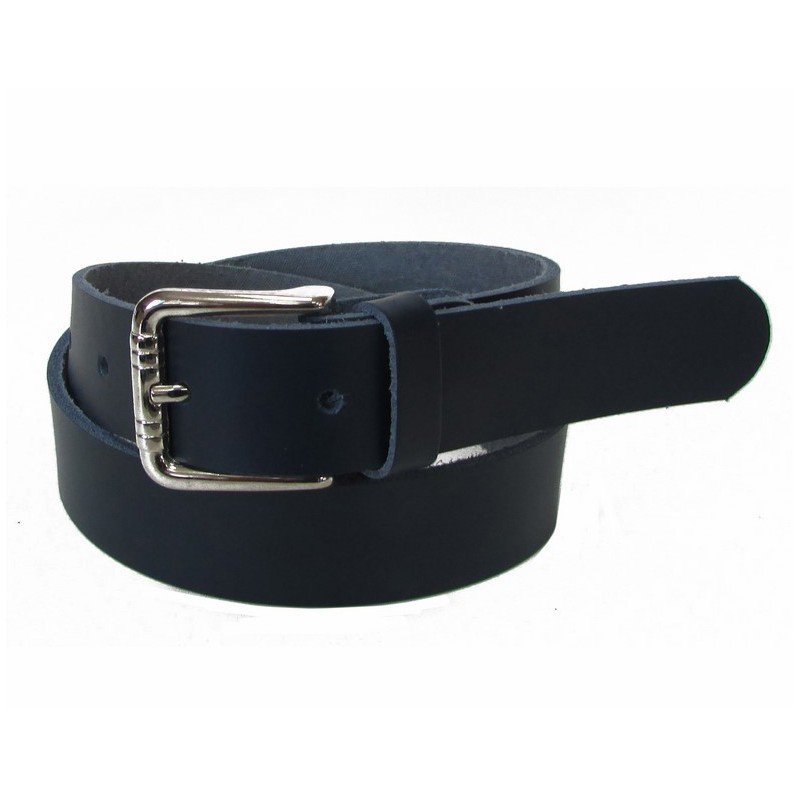 Cinturón de piel en color azul marino de 105cm de largo con hebilla en plata.