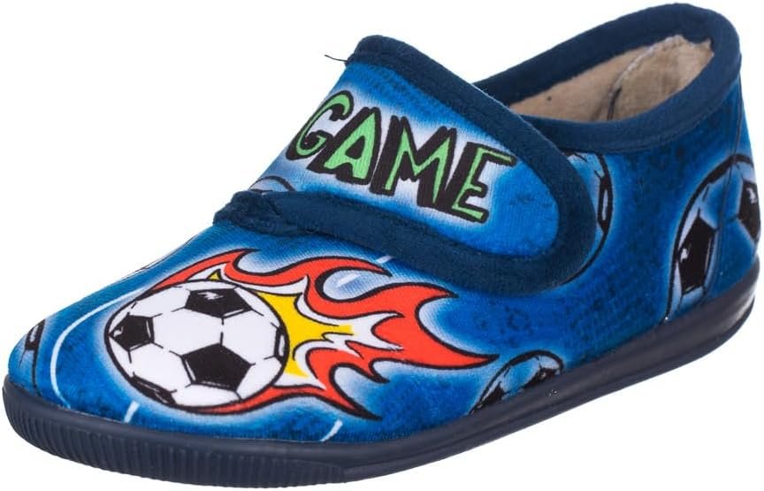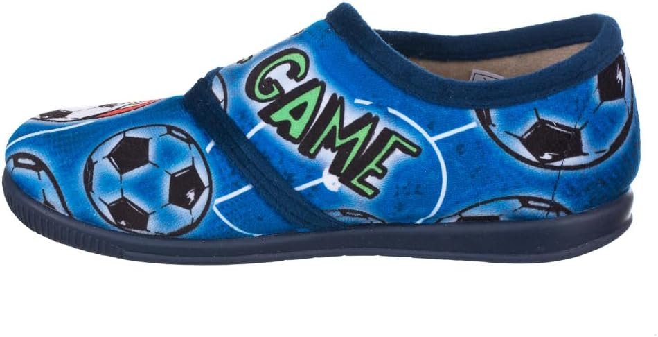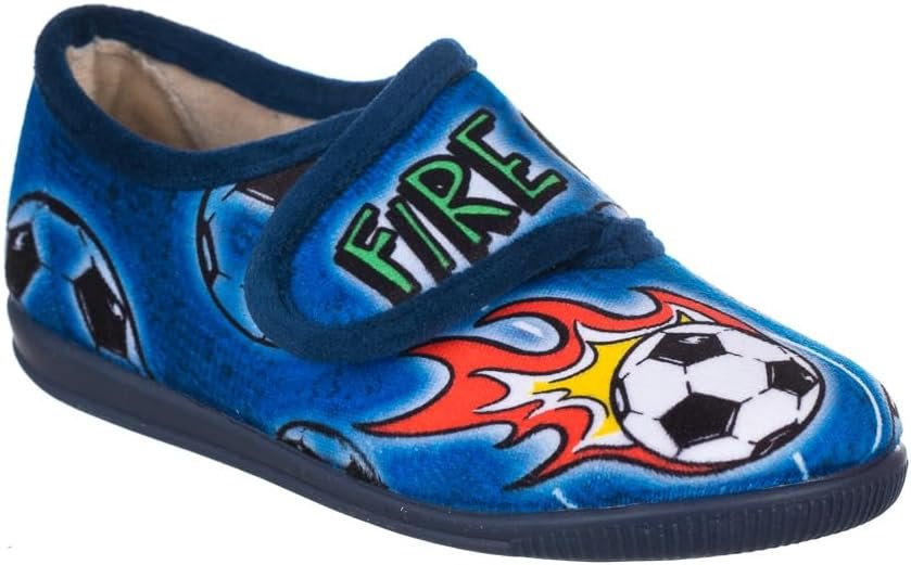 Zapatillas con cierre de velcro para casa. Zapatillas de casa para niños con cierre de velcro y dibujo en el empeine. Piso de goma flexible y que antideslizante para que no paren de jugar.